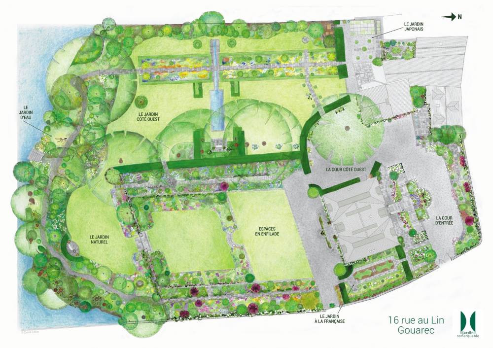 Un jardin en ville est situé au bord du canal de Nantes à Brest au coeur d'une petite ville charmante, Gouarec (22). Le jardin est fait d'éléments structurants : murs, terrasses, pièces d'eau, if et charmilles. Ils partagent l'espace en jardins à thème d'inspiration anglaise, pays natal de la propriétaire. De la couleur en toute saison, des fleurs en abondance, un brin d'humour et des trouvailles originales font un ensemble enchanteur.
